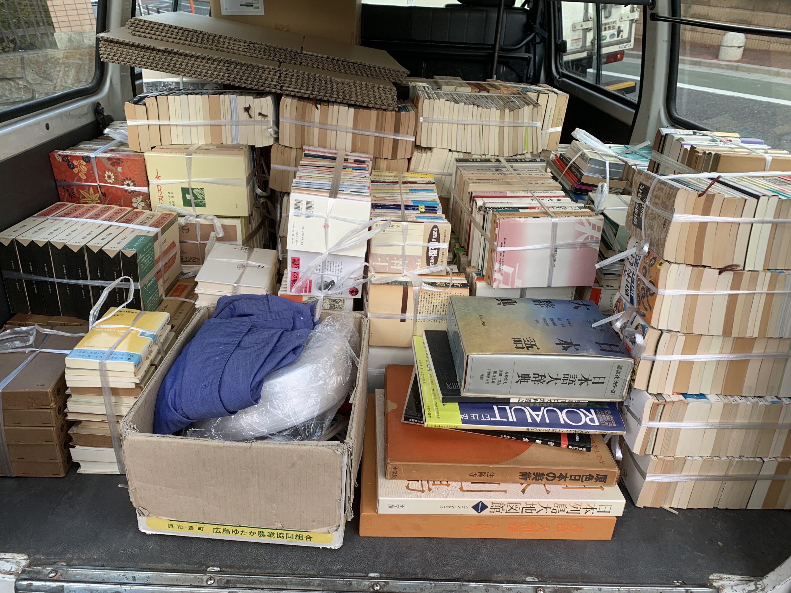 最終的には、多くの本を縛って積載し、搬出まで含めて約5時間で全作業が完了しました。大掛かりな作業でしたが、仕分けが進むにつれて「どういう方向性で本を集めていたのか」が少しずつ見えてくるのが印象的でした。