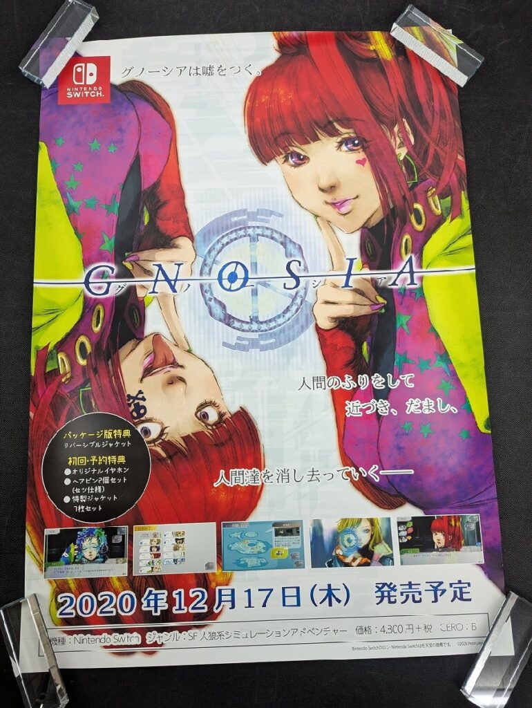 名作ホラー『クロックタワー』のリメイク作品。2024年発売のタイミングで掲示された非売品ポスターで、ホラーゲームファンからの需要も高い一枚です。 - GNOSIA(グノーシア) Switch プチデポット 販促B2判ゲームポスター(店頭告知用)