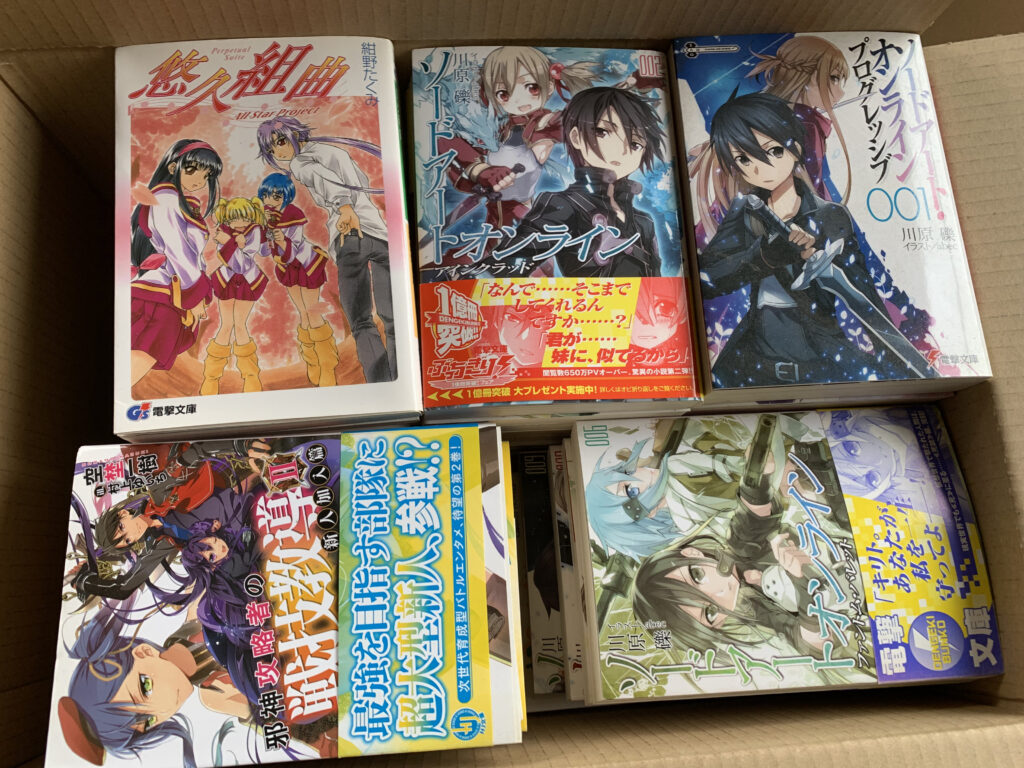 またライトノベルも約200冊。「ソードアートオンライン」「俺の妹がこんなに可愛いわけがない」「変態王子と笑わない猫。」など、2000年代後半~2010年代のヒット作が中心。全巻揃っていないものや状態が厳しいものもありましたが、ジャンルとしてまとめて評価させて頂きました。