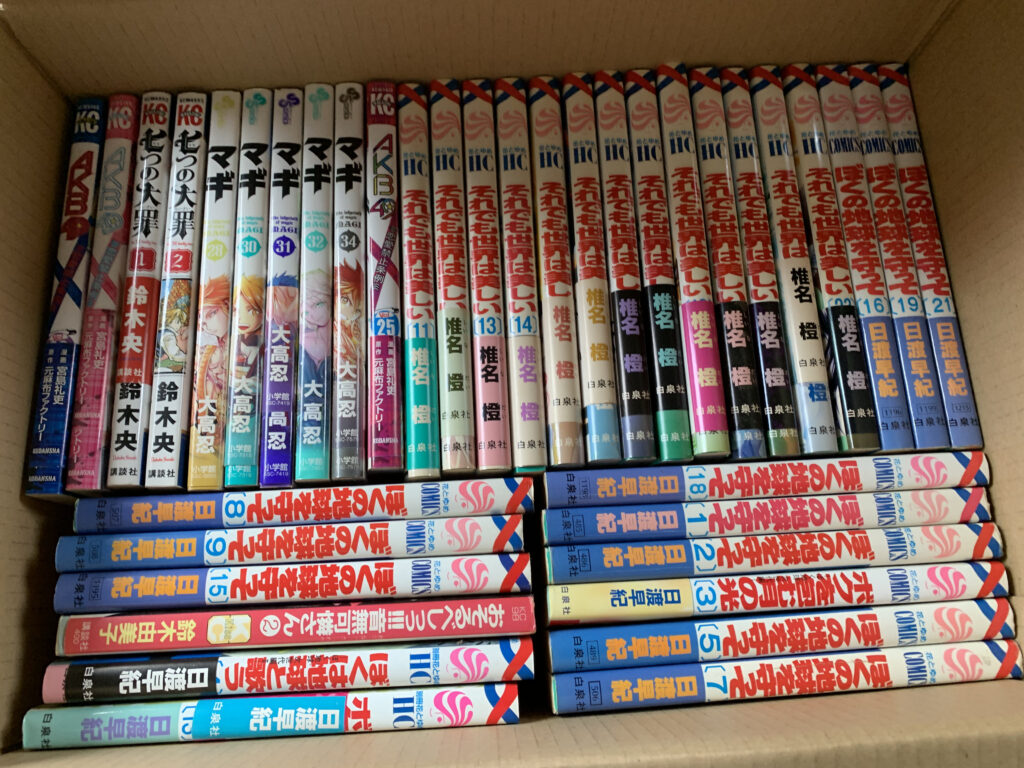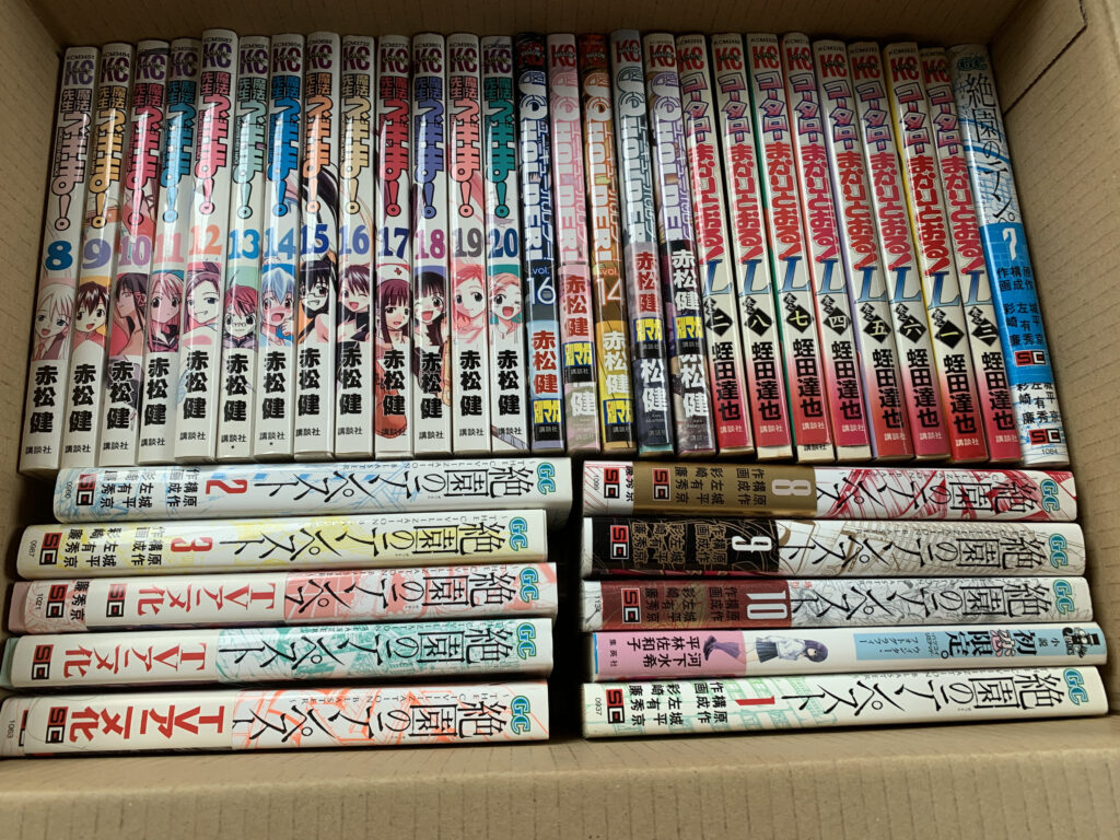 実際にお伺いすると、漫画本が約15箱分。1990年代~2010年代の作品が中心で、「咲」「魔法先生ネギま!」「ああっ女神さまっ」など、長期連載や人気作も含まれていました。