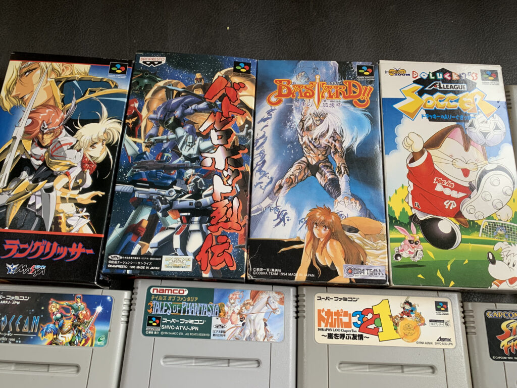そして今回の大きな見どころは、やはりゲーム部分でした。惜しくも箱がないソフトも多かったのですが、それでも内容が非常に良く、スーパーファミコンでは「ドラッキーシリーズ」や「天地創造」「ルドラの秘宝」「魔法陣グルグル」など、需要の高いラインナップが揃っていました。
